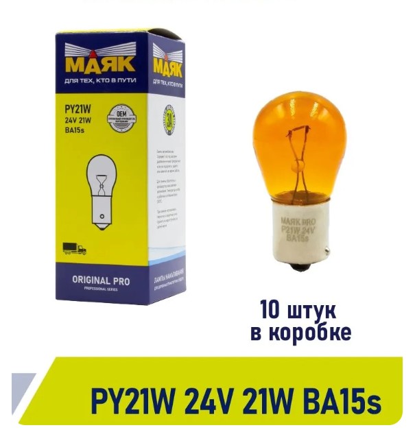Лампа Маяк Original Pro P21W 24V 21W BA15s ORANGE /02413Or/ (стоп) (10 в уп) |