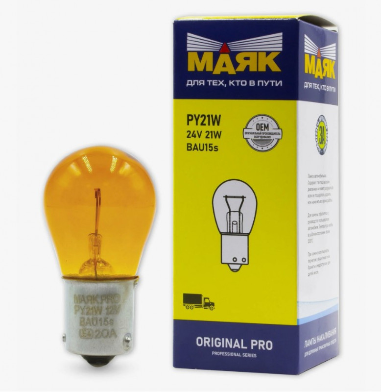 Лампа Маяк Original Pro PY21W 24V 21W BAU15s ORANGE/02418Amb/ см.цок (стоп) (10 в уп) |