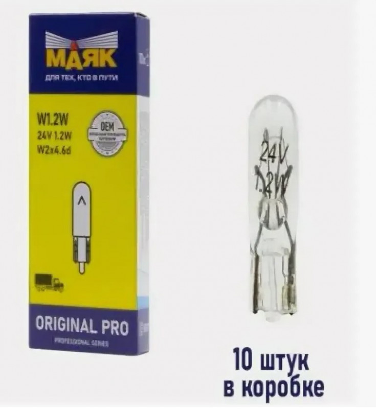 Лампа Маяк Original Pro W1.2W 24V 1.2W W2x4.6d /02412Бц/ б/цок (п/приборов) (10 в уп) |