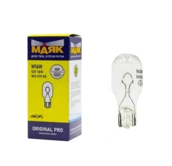 Лампа Маяк Original Pro W16W 12V 16W W2.1x9.5d /01226Бц/ б/цок (габарит) (10 в уп) |