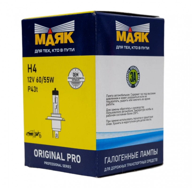 Лампа Маяк Original Pro H4 12V 60/55W P43t /02420/ |
